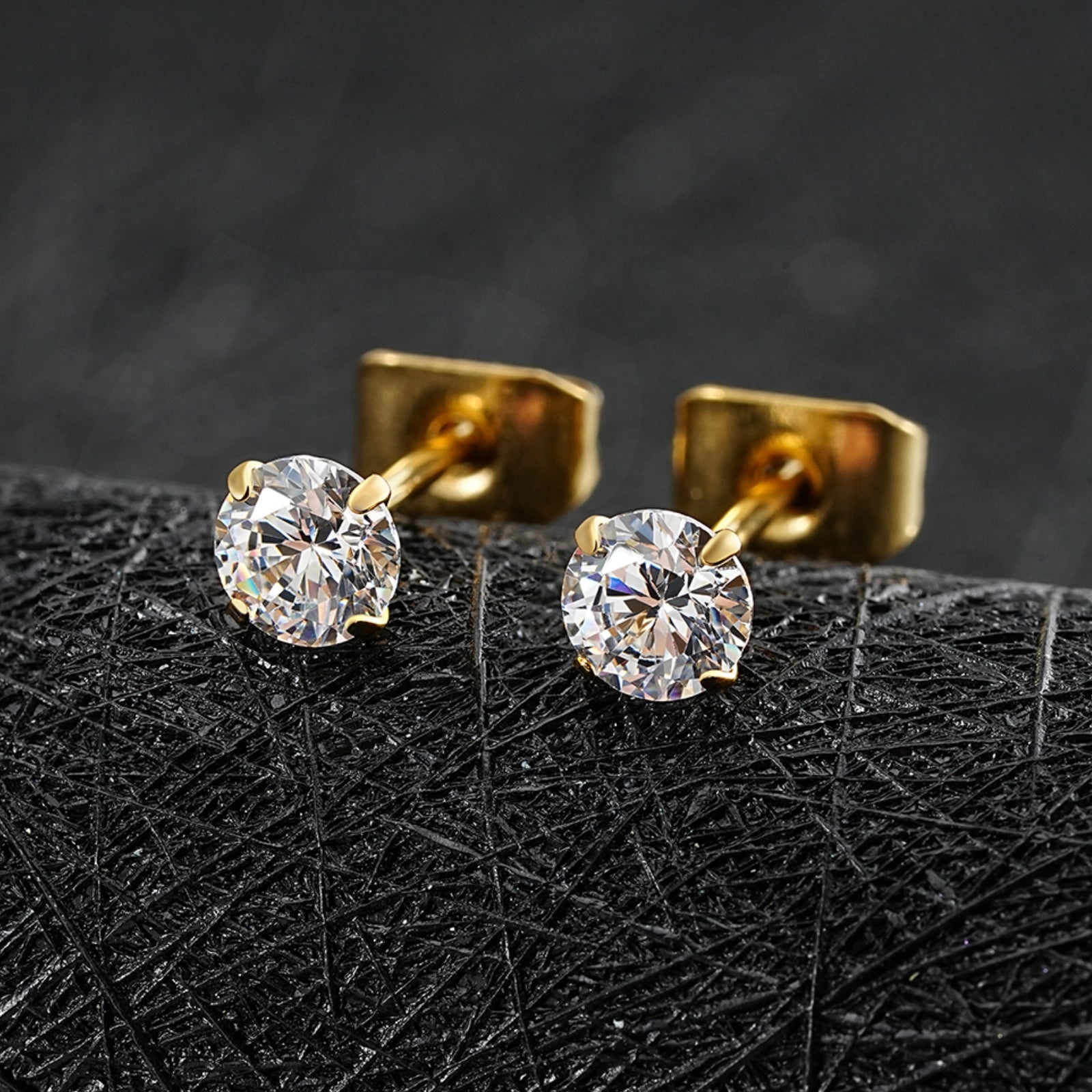Par de Brincos Ponto de Luz de Aço Cirúrgico com Zircônia