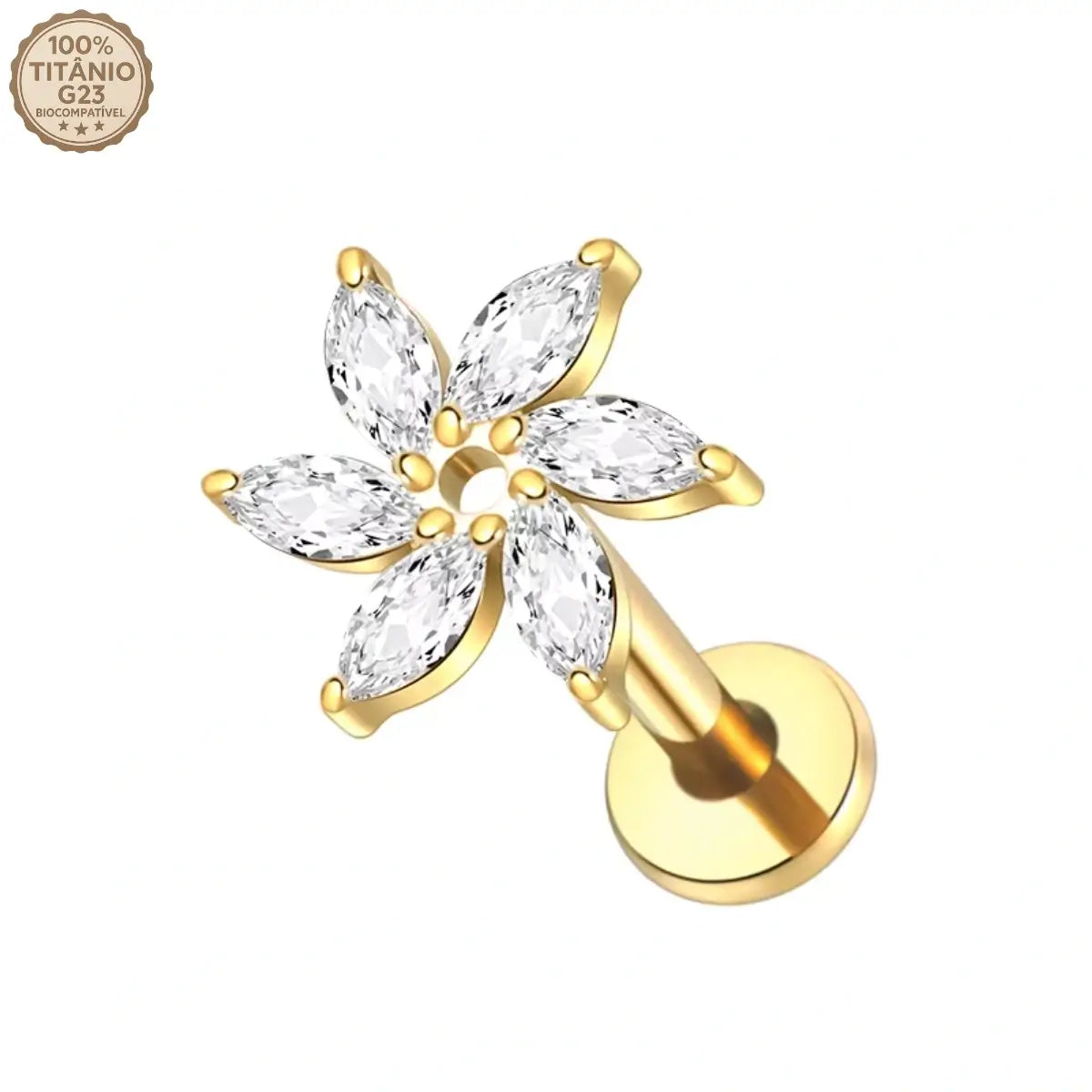 Piercing Labret de Titânio com 6 Zircônias em Formato de Flor