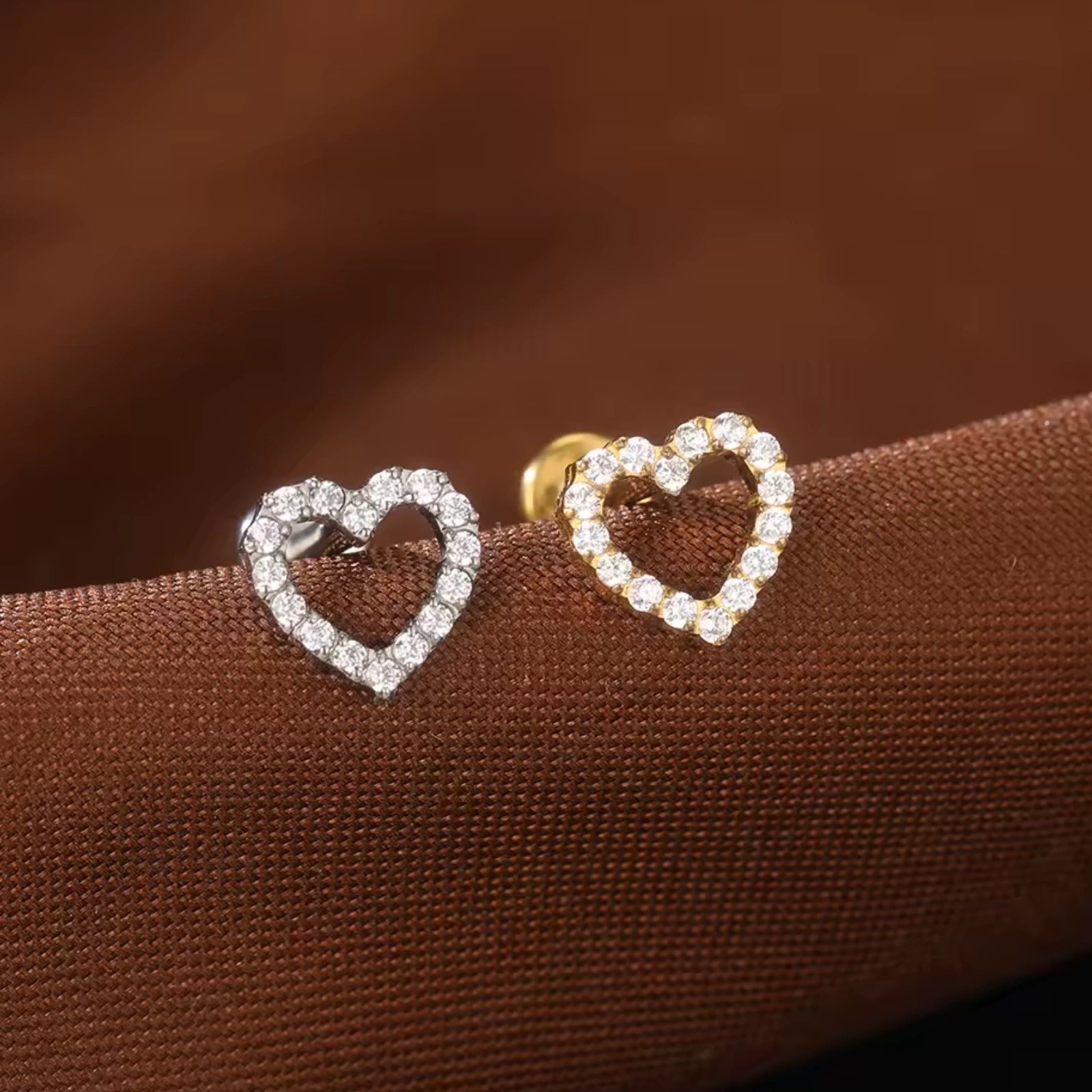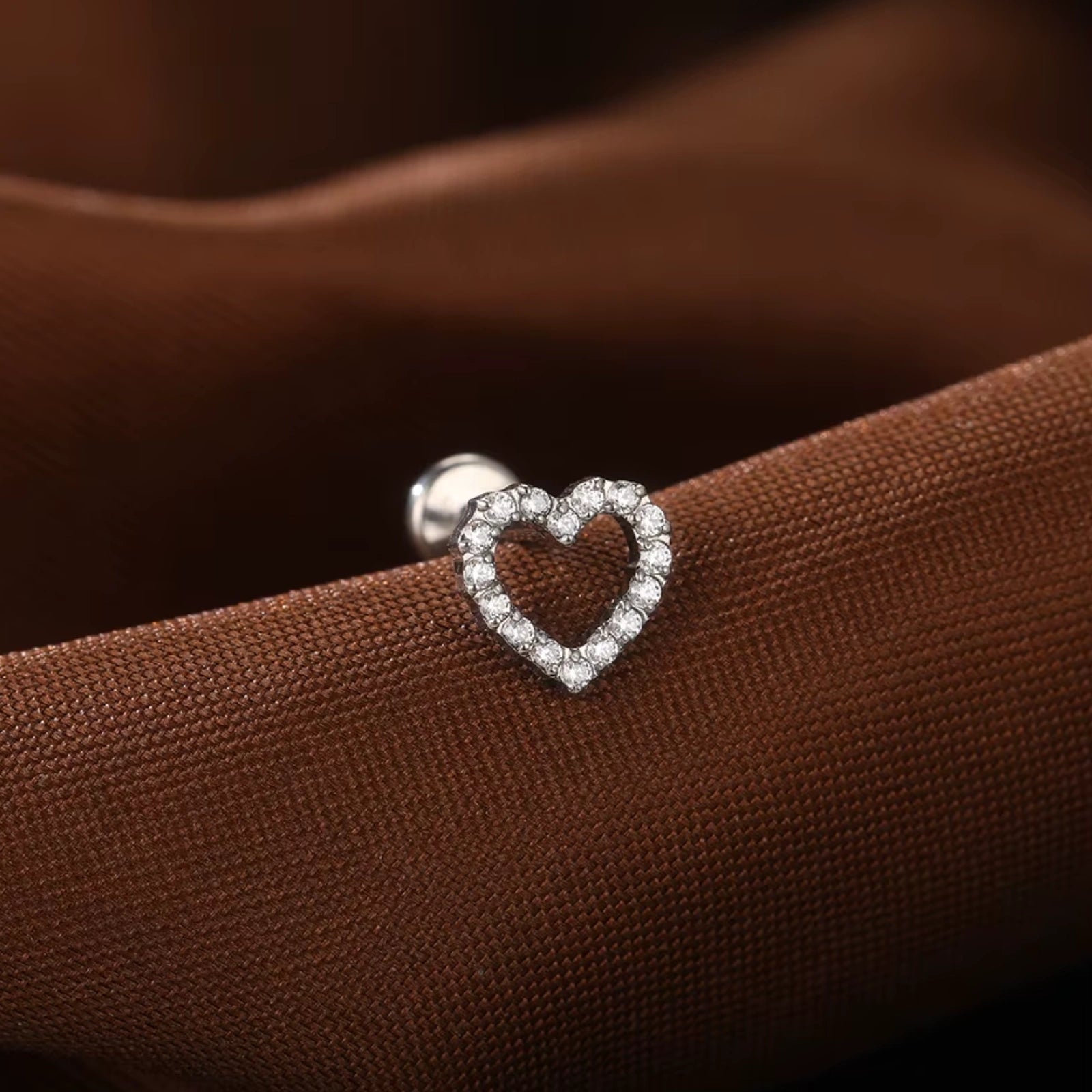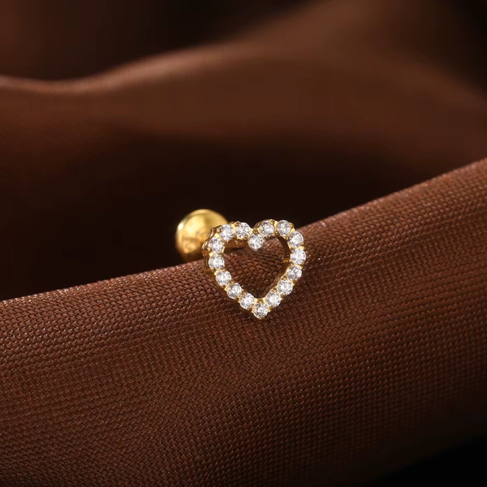 O Piercing Labret Coração com Zircônia em Titânio G23 da Piercing Lab une o design romântico e atemporal do coração ao brilho intenso da zircônia cravada, com a máxima segurança clínica do titânio de grau implantável. Fabricado em Titânio G23 (padrão ASTM F136), com sistema de rosca interna, topo completamente liso e colocação sem atrito. Disponível nas versões Natural (prateado titânio) e Dourado (revestimento PVD).