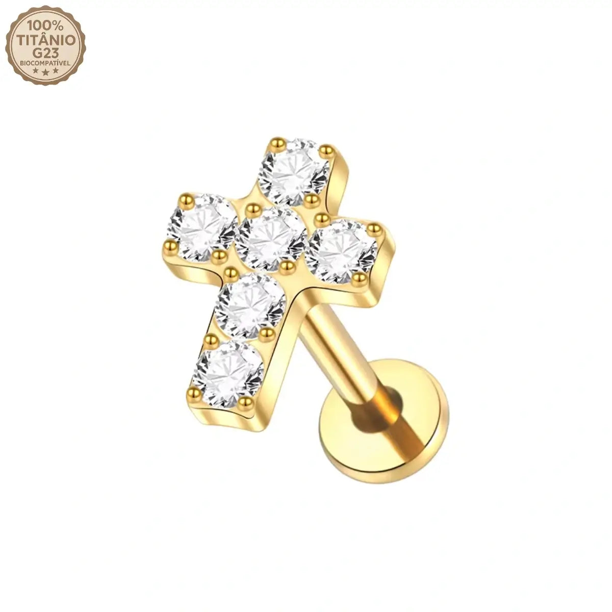 Piercing Labret de Titânio com Cruz em Zircônia