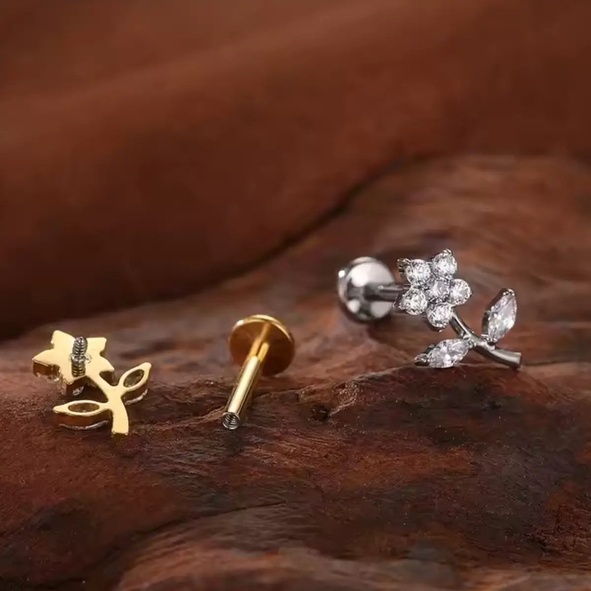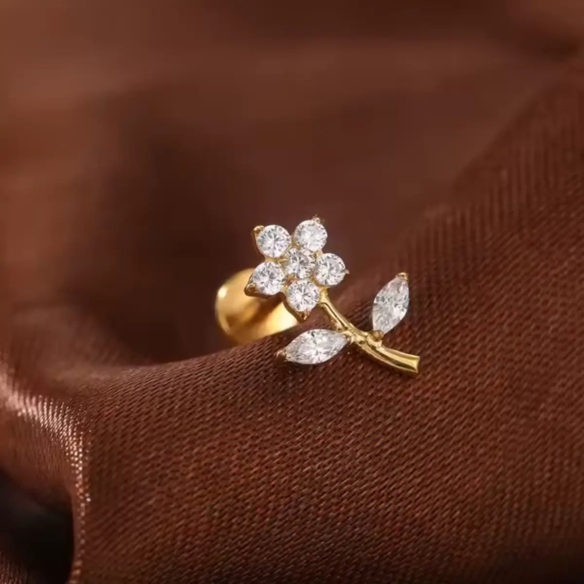Piercing Labret de Titânio Flor em Zircônia