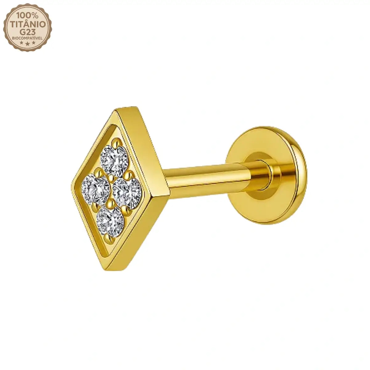 Piercing Labret de Titânio Losango em Zircônia