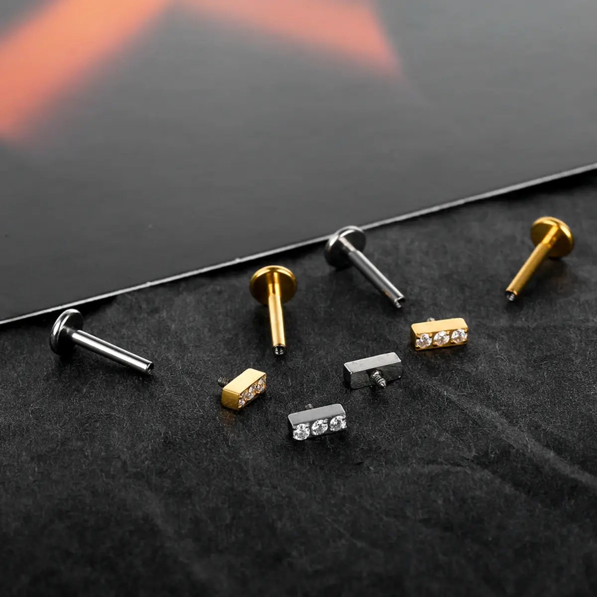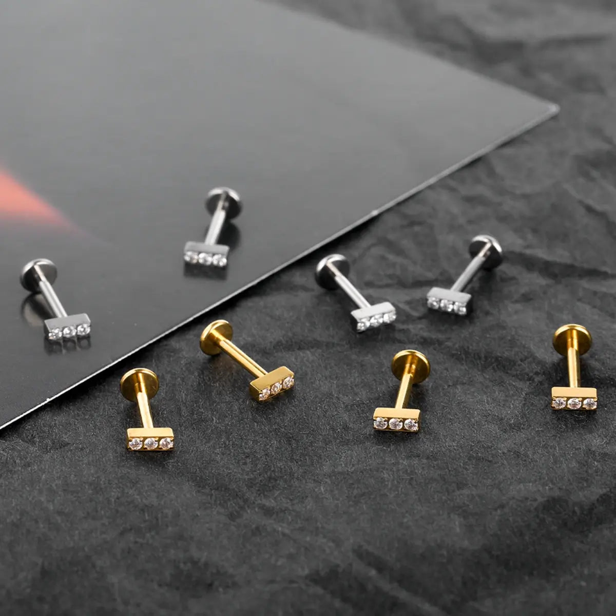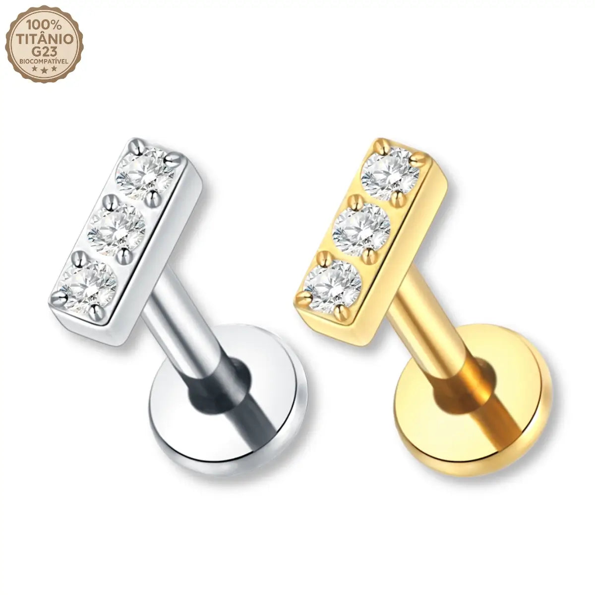 Piercing Labret de Titânio Retangular com 3 Zircônias